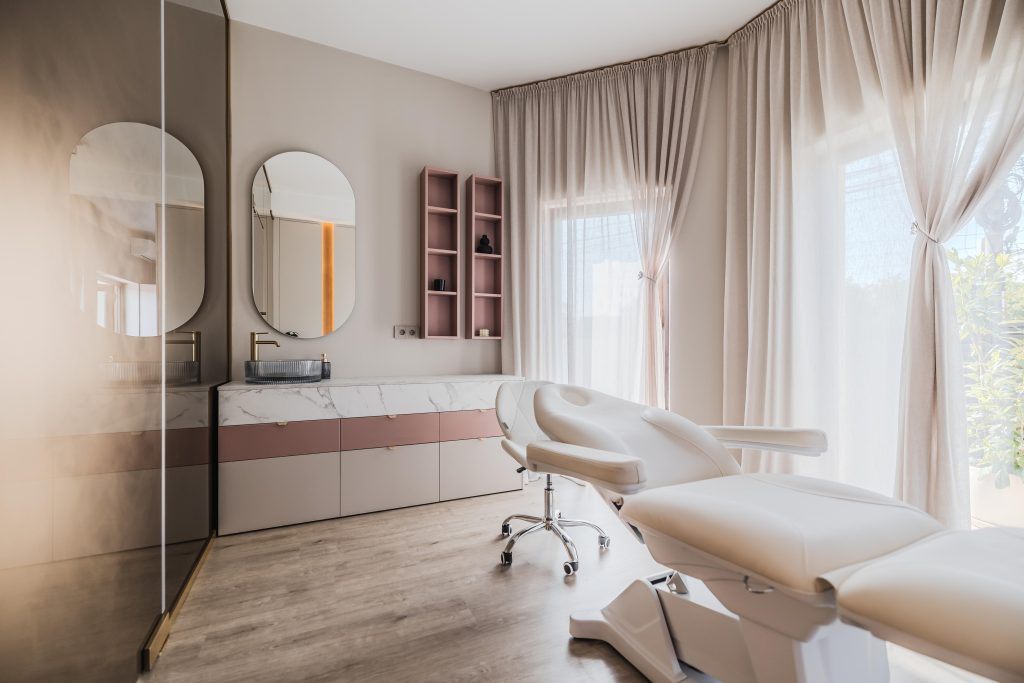 Într-un apartament rezidențial, adaptarea poate însemna o bază neutră, completată de accente jade, lemn cu textură vizibilă și textile naturale care adaugă căldură. Într-un salon de beauty, direcția poate merge spre corpuri de iluminat statement, tonuri mai dramatice, finisaje mate și câteva detalii memorabile care construiesc identitate de brand. Într-o pensiune sau unitate boutique, materialitatea joacă un rol central. Lemnul, piatra, textilele și elementele locale reinterpretate contemporan pot crea o atmosferă autentică, fără folclor decorativ gratuit.
